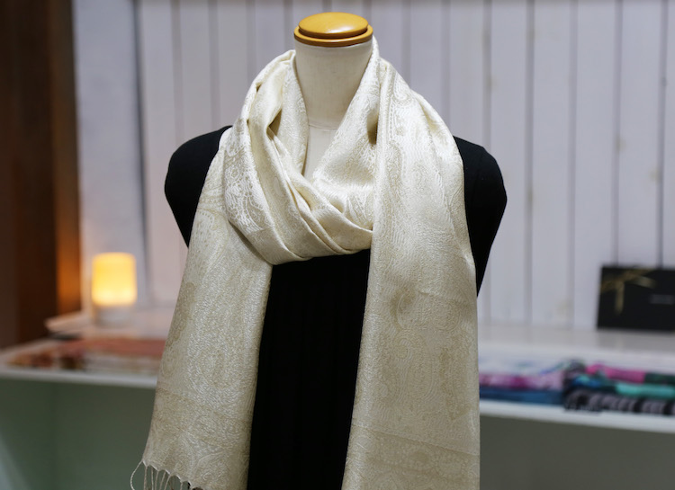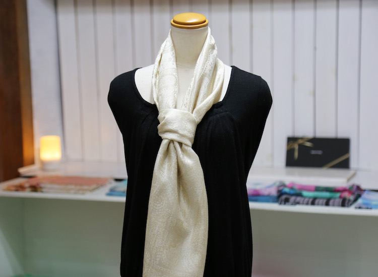 「繊維の女王」シルクをインド伝統技術で織り上げた生地は、するりとなめらか、しっとりとした極上の肌触りです。敏感肌の方や首に巻くことが苦手な方もシルクの肌触りなら安心です!
