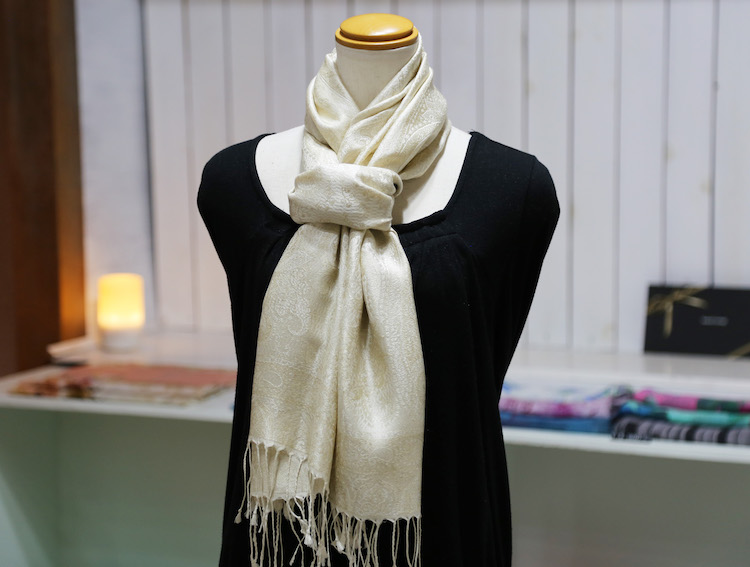 シルクは代表的な通年素材です。春・秋・冬は防寒とファッションのアクセントに、夏は日除けや冷房対策に。使い方を変えて一年中使うことができます。さらに強度も高く、化学繊維に劣らない強さを持っているため、非常に長く使うことができる優れたストールです。