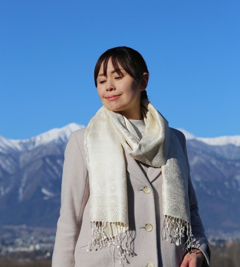 「繊維の女王」シルクをインド伝統技術で織り上げた生地は、するりとなめらか、しっとりとした極上の肌触り。敏感肌の方や首に巻くことが苦手な方もシルクの肌触りなら安心してお使いいただけます。