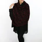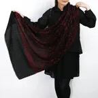 バランスの良い大判サイズで、巻きでも羽織でもどちらも使いやすいストールです。特に羽織は全面に施された刺繍が美しく輝き、サッとあしらうだけでゴージャスな雰囲気に変化します。