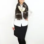 生地感よりカジュアルな普段使いにも、少しフォーマルなシーンでも使いやすいタイプです。スタイルや場所を問わず合わせることができる優れたストールです。