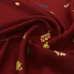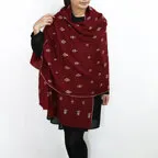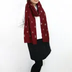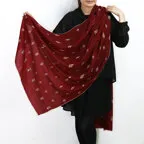 糸と針が紡ぐ物語。カシミヤ手刺繍ストール。深みのあるワインレッドに主張しすぎない煌びやかな刺繍が映える一枚です。