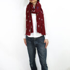 糸と針が紡ぐ物語。カシミヤ手刺繍ストール。深みのあるワインレッドに主張しすぎない煌びやかな刺繍が映える一枚です。