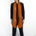 バランスの良い大判サイズで、巻きでも羽織でもどちらも使いやすいストールです。特に羽織は全面に施された刺繍が美しく輝き、サッとあしらうだけでゴージャスな雰囲気に変化します。