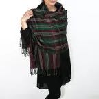 スタンダードな大判サイズで、首に巻くことはもちろん、室内でのひざ掛けにも、肩から羽織る使い方もできます。特に羽織りは、パッと華やかにエレガントな雰囲気に変わります。上半身を覆えるので、着ている服を気にせず合わせることができます。忙しい朝もコーディネートを気にする必要はありません。