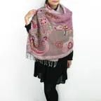 スタンダードな大判サイズで、首に巻くことはもちろん、室内でのひざ掛けにも、肩から羽織る使い方もできます。特に羽織りは、パッと華やかにエレガントな雰囲気に変わります。上半身を覆えるので、着ている服を気にせず合わせることができます。忙しい朝もコーディネートを気にする必要はありません。