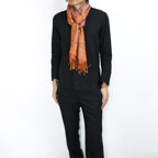 シルク100%の品の良い光沢感と美しいドレープが相まって、フォーマルな場面やパーティーシーンで大活躍します。シャツやブラウス、ドレスやスーツ、ジャケットなどのトップスと相性が抜群で、一巻きでいつものファッションを格上げできます。