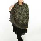 サイズの大きなウールショール。ニュアンスカラーの配色でシックに決まります!