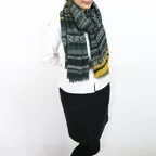 ボリュームを出すこともできて、コートのインとしても活躍する大判ウール。出す面によって落ち着き感とアクセント効果を使い分けることができます。
