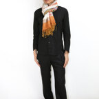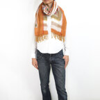 スタンダードな大判サイズで、首に巻くことはもちろん、室内でのひざ掛けにも、肩から羽織る使い方もできます。特に羽織りは、パッと華やかにエレガントな雰囲気に変わります。上半身を覆えるので、着ている服を気にせず合わせることができます。忙しい朝もコーディネートを気にする必要はありません。