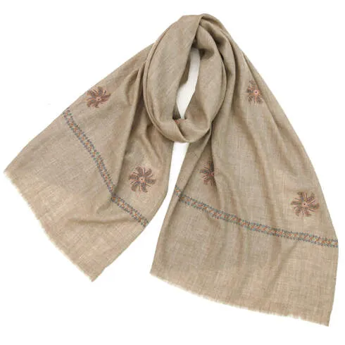 最上級カシミール産カシミヤを手織りで丁寧に織り上げた生地はふわりとしてやわらかくなめらか。さらに全面に施されたシルク糸とも相まって、しっとりとした極上の肌触りを実現しています。原毛はインドカシミール州、ラダック地方に連なる標高4000m〜5350mのヒマラヤ山脈に生息するカシミヤ山羊からのみ生み出されます。