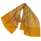 このカシミヤストールには最も繊細なインドカシミール地方ラダック産カシミア糸(パシュミナ)が使われています。そのため手織りカシミヤストールの中でも最も目が細く繊細な生地となっています。薄くて軽くてやわらかい最上級の一枚です。