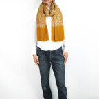 198cm×70cm大判サイズで、巻きでも羽織でもどちらも使いやすいストールです。特に羽織は全面に施された刺繍が美しく輝き、サッとあしらうだけでゴージャスな雰囲気に変化します。