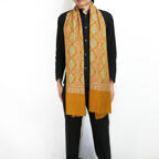 このカシミヤストールには最も繊細なインドカシミール地方ラダック産カシミア糸(パシュミナ)が使われています。そのため手織りカシミヤストールの中でも最も目が細く繊細な生地となっています。薄くて軽くてやわらかい最上級の一枚です。