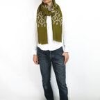 このカシミヤストールには最も繊細なインドカシミール地方ラダック産カシミヤ糸(パシュミナ)が使われています。そのため手織りカシミアストールの中でも最も目が細く繊細な生地となっています。薄くて軽くてやわらかい最上級の一枚です。
