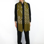 バランスの良い大判サイズで、巻きでも羽織でもどちらも使いやすいストールです。特に羽織は全面に施された刺繍が美しく輝き、サッとあしらうだけでゴージャスな雰囲気に変化します。