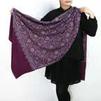 このカシミヤストールには最も繊細なインドカシミール地方ラダック産カシミア糸(パシュミナ)が使われています。そのため手織りカシミヤストールの中でも最も目が細く繊細な生地となっています。薄くて軽くてやわらかい最上級の一枚です。