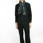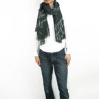 コーディネートしやすいブラックベースの大判ショール。落ち着いた色使いで合わせやすくなっています。