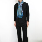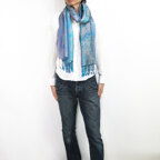 スタンダートな大判サイズで巻いても羽織っても、どちらも使いやすいタイプです。特に羽織は全体の印象がパッと華やかに、エレガントな雰囲気に変化します。