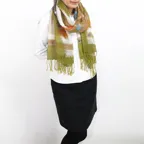 スタンダードな大判サイズで、首に巻くことはもちろん、室内でのひざ掛けにも、肩から羽織る使い方もできます。特に羽織りは、パッと華やかにエレガントな雰囲気に変わります。上半身を覆えるので、着ている服を気にせず合わせることができます。忙しい朝もコーディネートを気にする必要はありません。