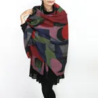 非常に大きなショールサイズで、広げて羽織れば上半身をすっぽりと覆うことができます。縦横の長さも十分にあるため、巻き方の自由度が広がります。程よいボリューム感と立体感を簡単につくることができるため、一巻きでこなれた印象になります。面積もあるので、真夏の室内での冷房対策や膝掛けとしても使いやすくなっています。