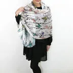 大判サイズのストールで肩から羽織る使い方もできます。春夏の日除けや室内の冷房対策としても使いやすくなっています。
