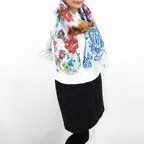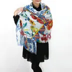 大判サイズのストールで肩から羽織る使い方もできます。春夏の日除けや室内の冷房対策としても使いやすくなっています。