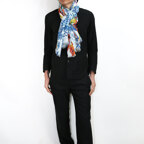大判サイズのストールで肩から羽織る使い方もできます。春夏の日除けや室内の冷房対策としても使いやすくなっています。