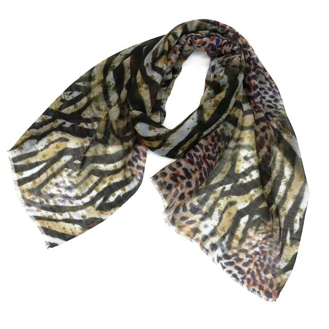 カラフルな色使いの幾何学ストール。多色使いで見た目以上に様々なお洋服に合わせることができます!