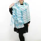 大判サイズのストールで肩から羽織る使い方もできます。春夏の日除けや室内の冷房対策としても使いやすくなっています。
