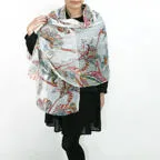 大判サイズのストールで肩から羽織る使い方もできます。春夏の日除けや室内の冷房対策としても使いやすくなっています。