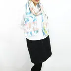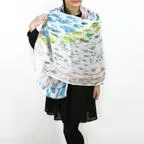 大判サイズのストールで肩から羽織る使い方もできます。春夏の日除けや室内の冷房対策としても使いやすくなっています。