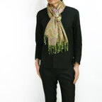 スタンダートな大判サイズで巻いても羽織っても、どちらも使いやすいタイプです。特に羽織は全体の印象がパッと華やかに、エレガントな雰囲気に変化します。