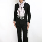 スタンダートな大判サイズで巻いても羽織っても、どちらも使いやすいタイプです。特に羽織は全体の印象がパッと華やかに、エレガントな雰囲気に変化します。