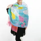 大判サイズのストールで肩から羽織る使い方もできます。春夏の日除けや室内の冷房対策としても使いやすくなっています。