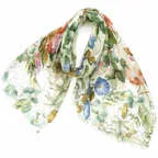 花畑のような美しさに視線が奪われるストール。知性と女らしさが同居する、端正なデザインです。