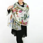 大判サイズのストールで肩から羽織る使い方もできます。春夏の日除けや室内の冷房対策としても使いやすくなっています。