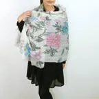 大判サイズのストールで肩から羽織る使い方もできます。春夏の日除けや室内の冷房対策としても使いやすくなっています。