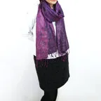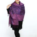 スタンダートな大判サイズで巻いても羽織っても、どちらも使いやすいタイプです。特に羽織は全体の印象がパッと華やかに、エレガントな雰囲気に変化します。