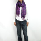 スタンダートな大判サイズで巻いても羽織っても、どちらも使いやすいタイプです。特に羽織は全体の印象がパッと華やかに、エレガントな雰囲気に変化します。