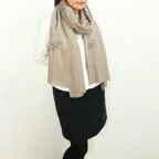 緻密で精巧な刺繍が目を見張る一枚。落ち着いたベースカラーで合わせやすく、手刺繍が程よいアクセントになる非常に使いやすいストールです。