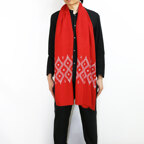 このカシミヤストールには最も繊細なインドカシミール地方ラダック産カシミヤ糸(パシュミナ)が使われています。そのため手織りカシミアストールの中でも最も目が細く繊細な生地となっています。薄くて軽くてやわらかい最上級の一枚です。