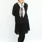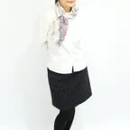 小ぶりなスクエアサイズで、アスコットタイのようにシャツやブラウスの中におさめて使うこともできます。室内でも巻いたままでいられるので使いやすくなっています。