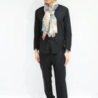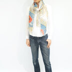 大判サイズのストールで肩から羽織る使い方もできます。春夏の日除けや室内の冷房対策としても使いやすくなっています。