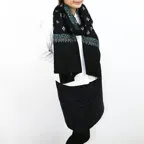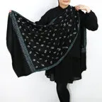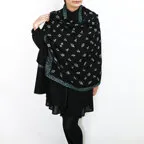 バランスの良い大判サイズで、巻きでも羽織でもどちらも使いやすいストールです。特に羽織は全面に施された刺繍が美しく輝き、サッとあしらうだけでゴージャスな雰囲気に変化します。