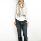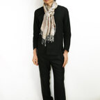 スタンダートな大判サイズで巻いても羽織っても、どちらも使いやすいタイプです。特に羽織は全体の印象がパッと華やかに、エレガントな雰囲気に変化します。