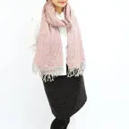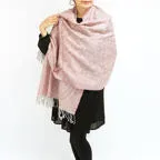 スタンダードな大判サイズで、首に巻くことはもちろん、室内でのひざ掛けにも、肩から羽織る使い方もできます。特に羽織りは、パッと華やかにエレガントな雰囲気に変わります。上半身を覆えるので、着ている服を気にせず合わせることができます。忙しい朝もコーディネートを気にする必要はありません。