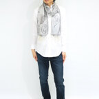 シルクの極上な肌触りはそのままに。他にはない独創的なデザインに仕上げた一枚。どんな巻き方をしても抜群の存在感を与えてくれます!