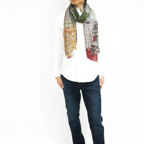 生地感よりカジュアルな普段使いにも、少しフォーマルなシーンでも使いやすいタイプです。スタイルや場所を問わず合わせることができる優れたストールです。