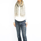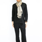 肩の力を抜いてリラックスして巻けるウールストール。落ち着いた色使いで合わせやすくなっています。